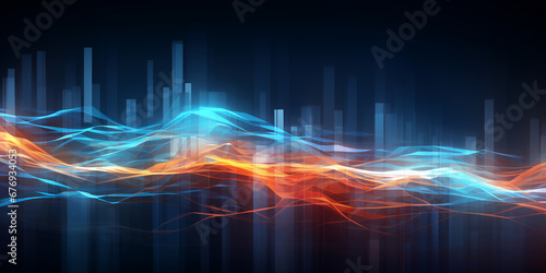 abstract digital technology background, sound and graphic shapes, network, graph, fluctuations. ai generative