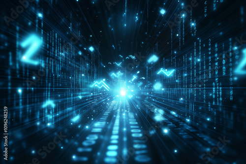 Abstract Digital Technology Background with Arrows and Binary Data in Blue Tones