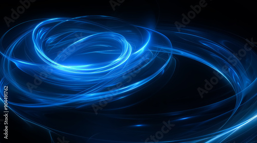 Abstract digital technology concept background with glowing blue neon smoke ring.