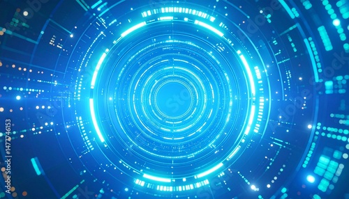 Abstract digital technology concept showing a futuristic technological interface with glowing circles