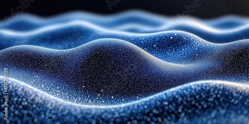Abstract digital texture with flowing waves of blue and shimmering particles, ideal for computer graphics and design.