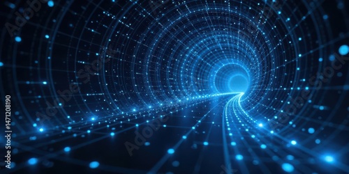 Abstract Digital Tunnel A Futuristic Pathway of Illuminated Lines and Glowing Particles