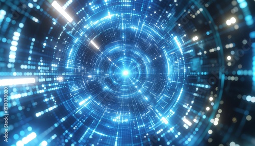 Abstract Digital Tunnel Futuristic Blue Light Technology Background