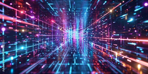 Abstract digital tunnel with colorful lights and lines, representing futuristic technology and data flow.