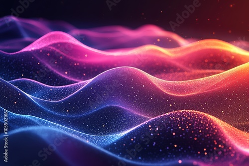 Abstract digital wave background with glowing particles. (1)