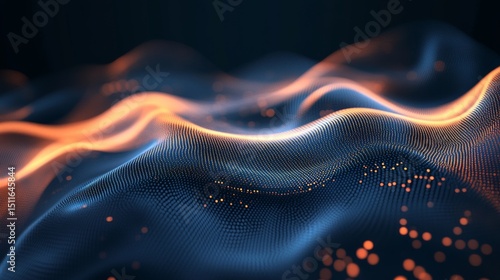 Abstract digital wave flowing on a dark background representing futuristic technology, data visualization, and modern science concepts in a 3d render