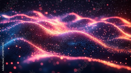 Abstract Digital Wave of Glowing Particles in Cyberspace. Generative AI