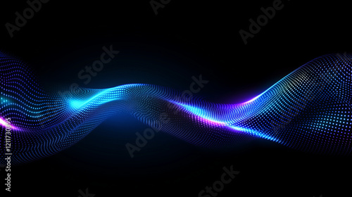 Abstract Digital Wave with Glowing Blue and Purple Light Dots on a Black Background