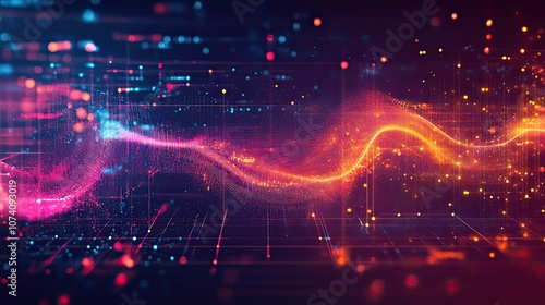 Abstract Digital Wave with Glowing Lights on Grid Background