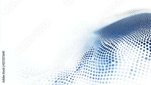 Abstract digital wave with halftone dots in blue and white creating a futuristic and dynamic design