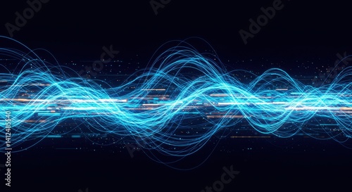 Abstract Digital Waveform: Glowing Blue Energy Flowing Through Dark Space
