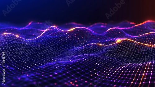 Abstract Digital Waves with Glowing Particles in a Futuristic Blue and Purple Tone for Background Use