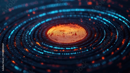 Abstract Digital Waves with Orange and Blue Circular Patterns