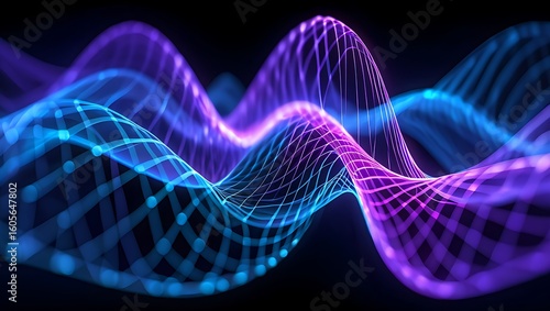 Abstract digital waves with vibrant blue and purple colors on a black background