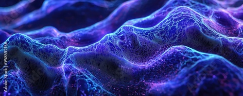 Abstract digital waves with vibrant blue and purple hues, creating a mesmerizing visual effect for artistic background use.