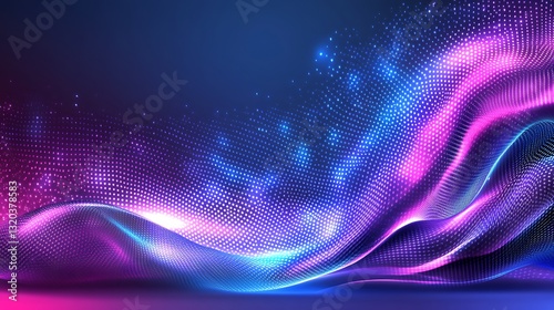 Abstract Digital Wavy Landscape Featuring Colorful Illuminated Particle Effects