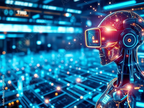 Abstract double exposure of businessman with smart glasses overlaying virtual hologram symbolizing internet of things, connection, networking