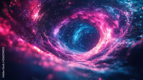 Abstract dynamic space vortex with neon highlights. Featuring cosmic patterns and glowing effects. Emphasizing movement and vibrancy. Ideal for sci-fi and modern-themed designs.