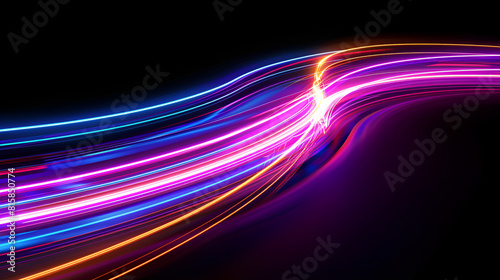 Abstract elegant background design with space for your text, Colorful curvy light trail isolated on black background, futuristic technology and innovation concept abstract background