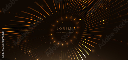 Abstract elegant golden circles lines on dark brown with dot lighting effect. Luxury template award design.