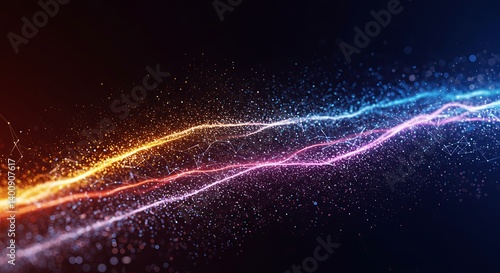 Abstract Energy Wave Background with Blue and Orange Glowing Particles