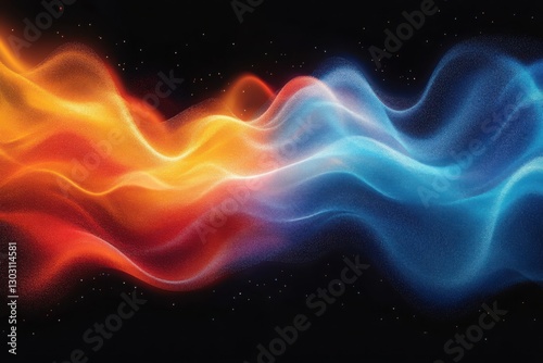 Abstract energy wave with flowing fiery orange and cool blue motion forming smooth curves against a dark background.