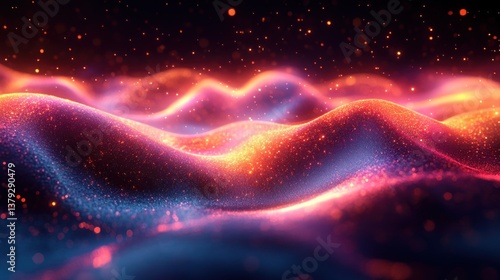 Abstract Energy Waves in Space with Neon Lights and Fractal Patterns