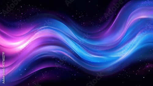 Abstract energy waves, vibrant purple and blue colors, swirling light streams, cosmic background, dark space, glowing ethereal patterns, dynamic fluid motion, electric neon effect, futuristic digital