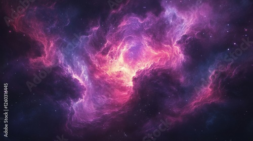 Abstract ethereal nebula with swirling colors. Featuring luminous gas clouds and dynamic star formations. Emphasizing cosmic beauty and mystery. Ideal for space and fantasy-themed designs.