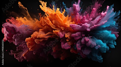 Abstract explosion of colors in paint splashes, isolated on white. Mixed liquid vivid flow, curved dynamic fluid for creative background - Generative