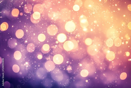 Abstract festive bokeh background with purple, gold, and pink lights.