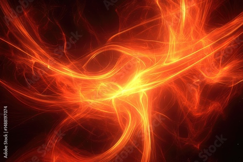 Abstract fiery energy with flowing red and orange lines on a dark cosmic backdrop.