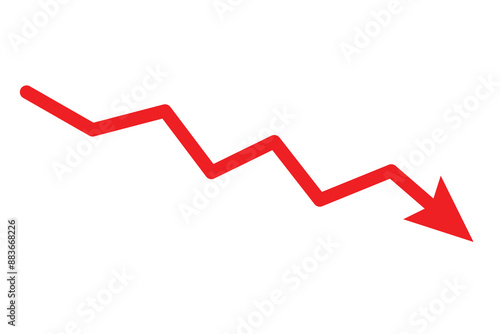 abstract financial chart of red color downtrend line graph. red decline arrow, Red arrow going down vector.