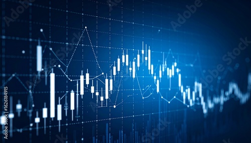Abstract Financial Data Visualization Blue Background Stock Photo.