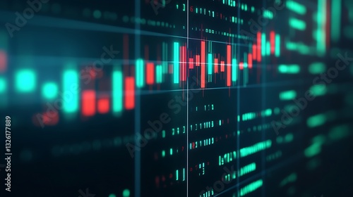 Abstract Financial Data Visualization with Colorful Candlestick Chart on Dark Background