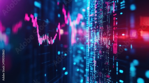 Abstract financial data visualization with glowing lines and charts.
