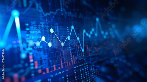 Abstract financial graph with uptrend line and arrows in stock market on blue color background