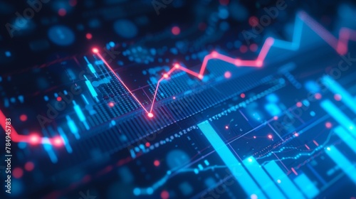 Abstract financial graph with uptrend line and arrows in stock market on blue color background
