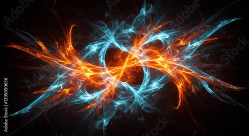 Abstract Fire and Ice: A captivating abstract artwork depicts a swirling vortex of fire and ice, with blazing orange and cool blue hues interweaving in a mesmerizing dance of contrasts.