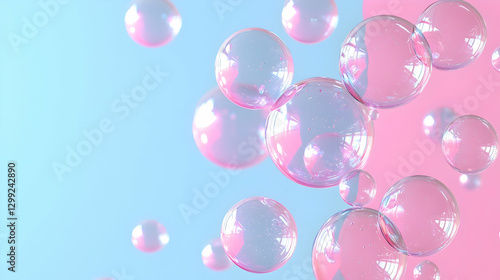 Abstract Floating Pink and Blue Spheres with Reflective Surfaces and Light Effects