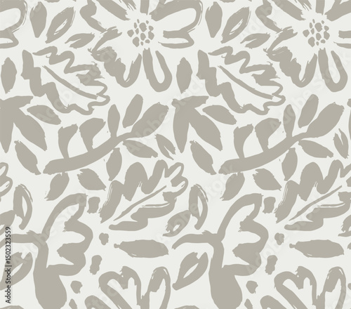 Abstract floral hand drawn seamless pattern with ink brush texture style.