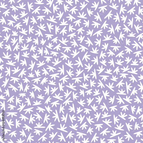 Abstract floral surface design by white and lilac colors vector. Funny cartoon surface design with simple flowers monochrome. Perfect for fabric, clothes and home decor