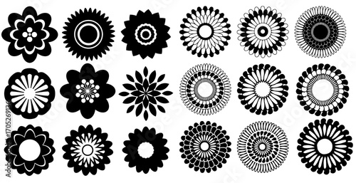 Abstract Flowers Icons. Circle Radial Design Elements