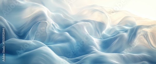 Abstract flowing blue fabric waves with soft light and intricate textures in ethereal landscape