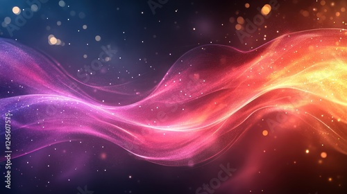 Abstract flowing energy waves in a dark space with glowing particles