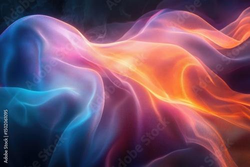 Abstract, flowing fabric waves in vibrant shades of blue, pink, and orange, creating a soft, ethereal feel.