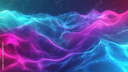 Abstract, flowing, glowing, digital, wavy, lines, pink, blue, dark, background, with, sparkle, effect.
