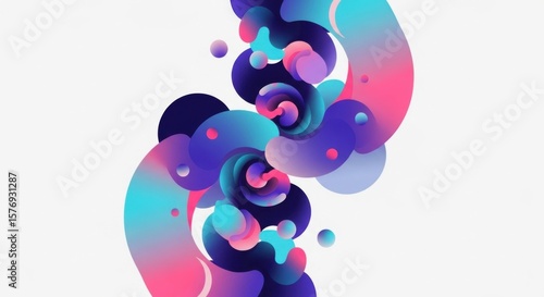 Abstract Flowing Gradient Shapes and Bubbles on White Background
