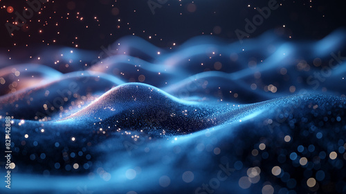 Abstract flowing lines and shapes with a sense of depth, representing the movement of data through a network, forming constellations.