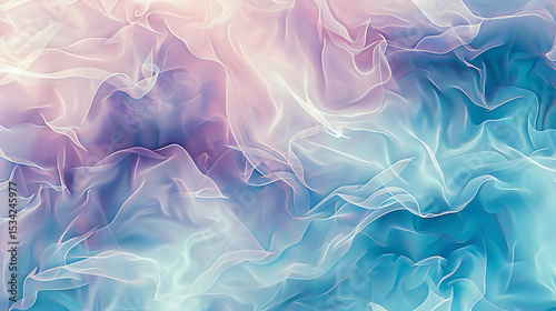 Abstract flowing lines create a dreamy and elegant background with a soft gradient of purple, blue, pink, and white colors, evoking a sense of fantasy and artistic expression